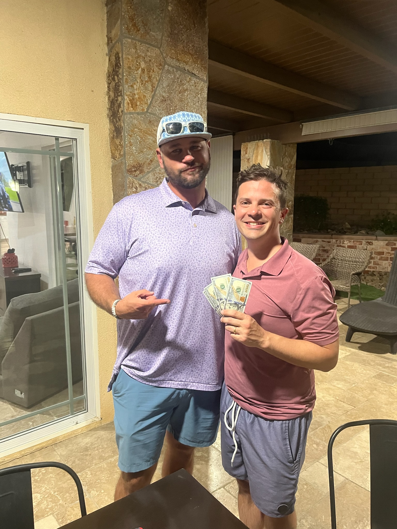 The stakes couldn't have been higher-$400 riding on this match, with Moyer looking to avenge a pre-cup loss to Dan. Moyer's driving had been rock-solid all week, but on this day, his accuracy faltered, and he found himself hitting balls into trouble on nearly every hole. Dan, with his steady, consistent game, took advantage of Moyer's errant shots. Dan doesn't hit it far, but he hits it straight, and that was enough to put Moyer on the back foot. The key moment came on 17 when Moyer hit his approach into the water, giving Dan the opening he needed. Dan didn't let up, using his rock-solid short game to seal the deal and win 2 & 1. As an added bonus, Dan invested in the Stack System, making it clear he was going to build on this success for future years. And in true Dan fashion, he refused Moyer's offer to Venmo him, demanding only cold hard cash for the win. Moyer, while disappointed, couldn't help but admire Dan's consistency, though he did make a mental note to "kick the sh&*#" of whoever was teaching him.